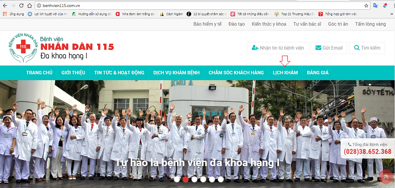 Muốn biết lịch khám bệnh của bệnh viện 115, bạn có thể tra cứu lịch khám của từng bác sĩ ở từng chuyên khoa cụ thể bằng cách truy cập vào website bệnh viện: benhvien115.com.vn vào mục Lịch khám để xem chi tiết.